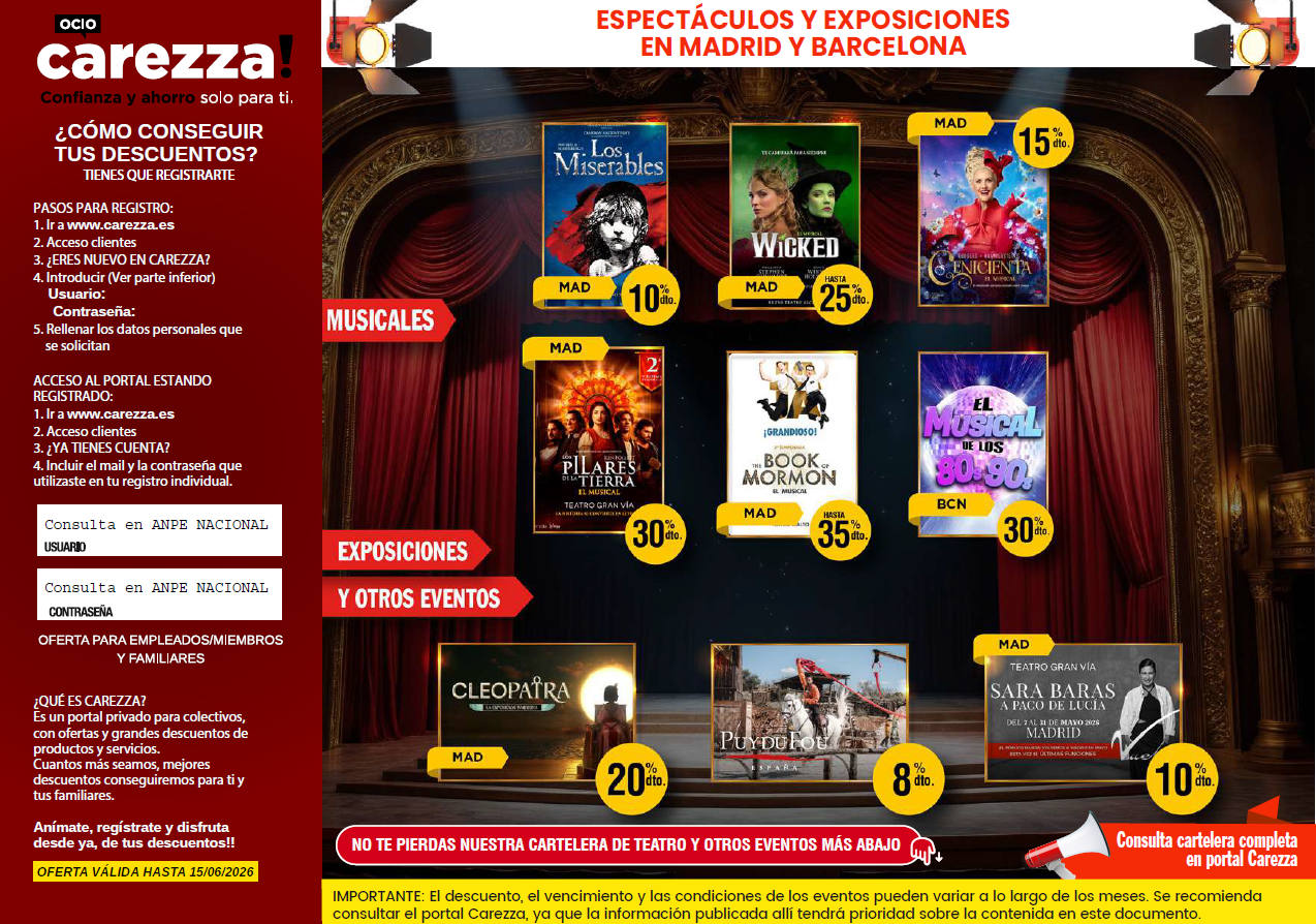 Carezza Ocio es la división de Carezza, encargada de ofrecer numerosas ofertas en ocio , tales como CINE, TEATROS, MUSICALES, EVENTOS ESPECIALES, VISITAS GUIADAS, PARQUES TEMÁTICOS A NIVEL NACIONAL, EXPOSICIONES…