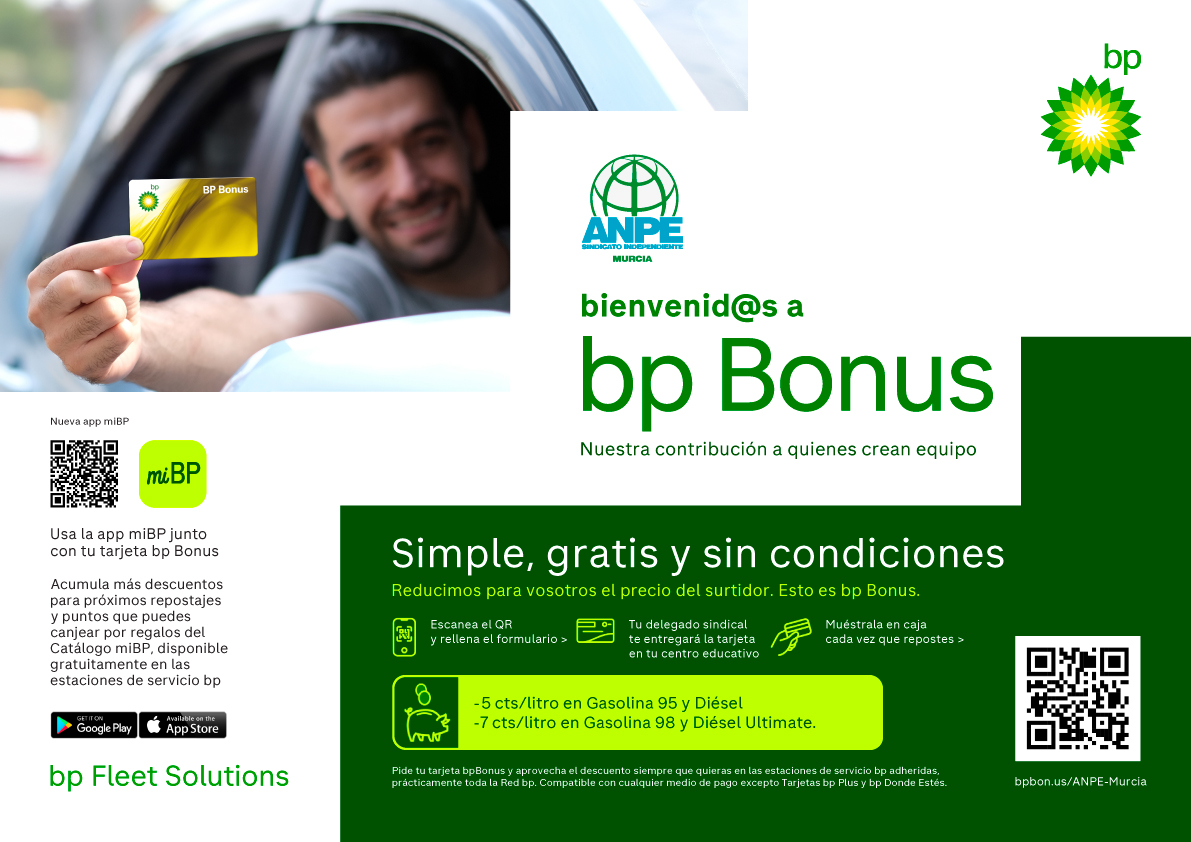 descuentos que ofrece la tarjeta BP BONUS ANPE MURCIA.